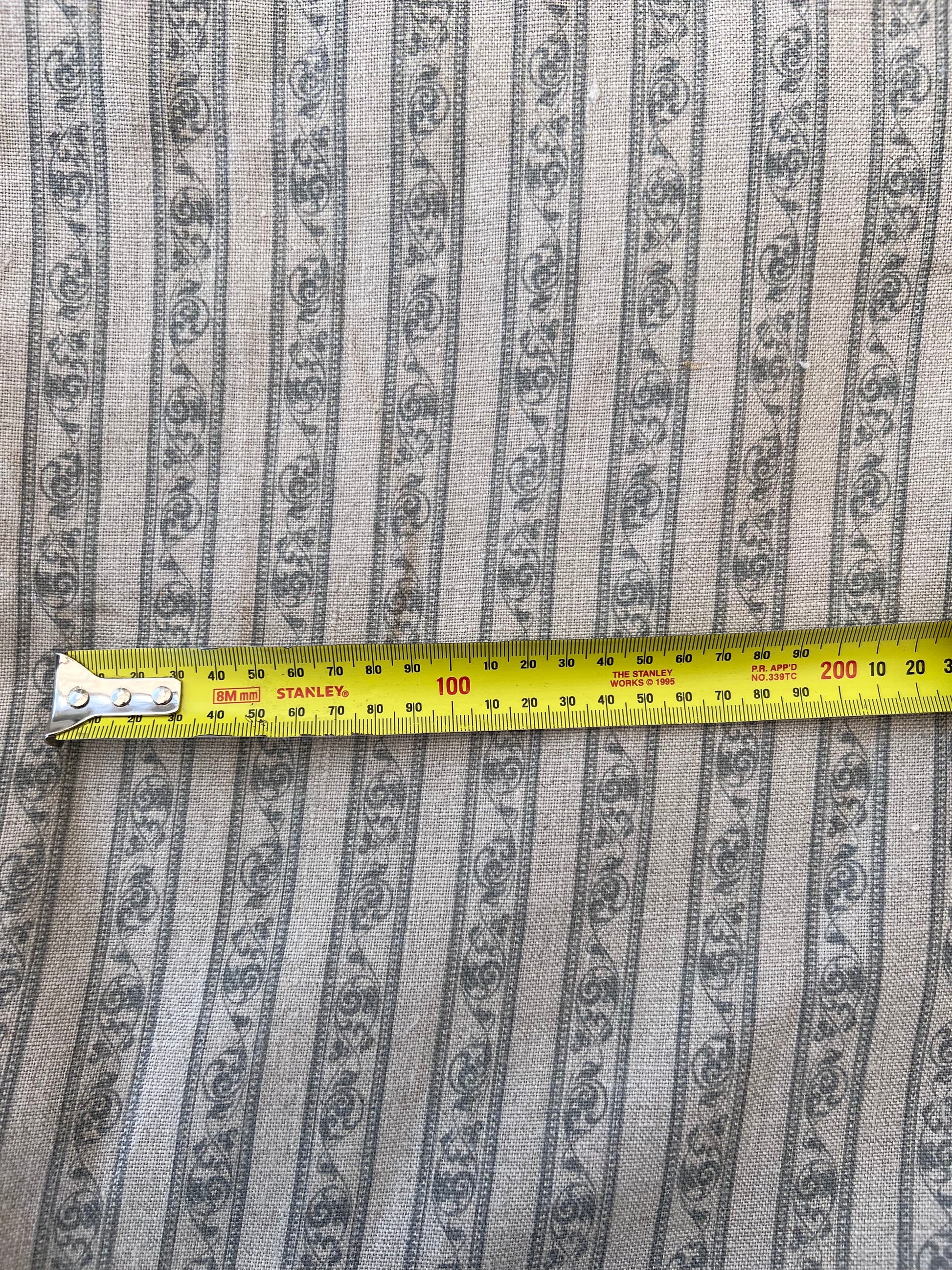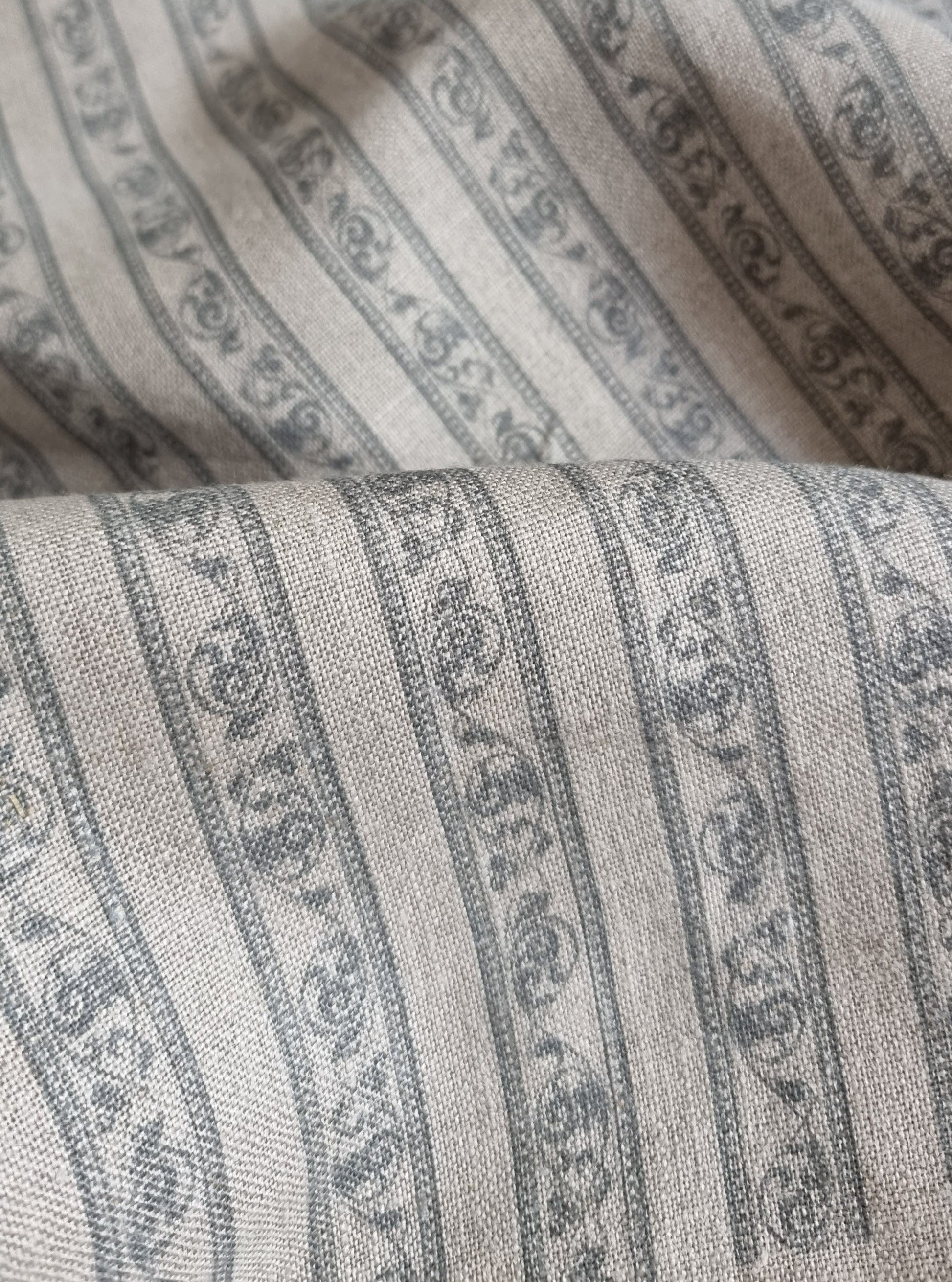 Blue Striped Floral Vintage Printed Linen 260gsm
